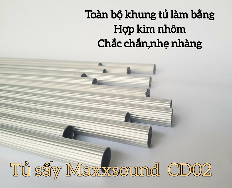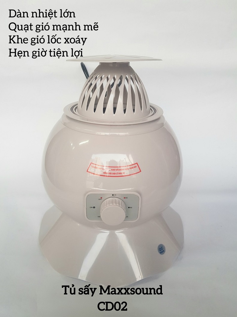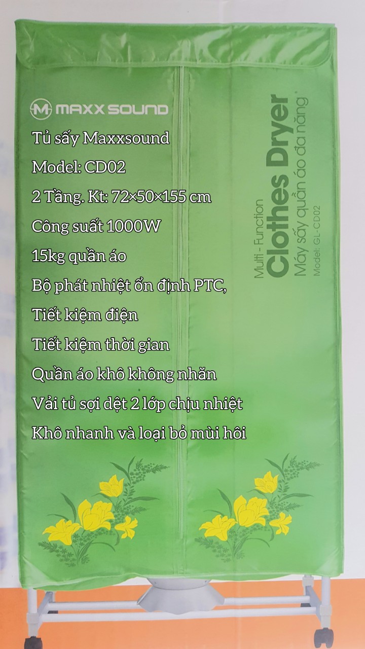 Tủ sấy MaxxSound CD02 thiết kế hình Chữ nhật, có 2 tầng. Sấy đươc tới 15Kg quần áo. Tủ sấy MaxxSound CD02 Có rất nhiều Ưu điểm vượt trội so với các sản phẩm Tủ sấy khác trên thị trường :